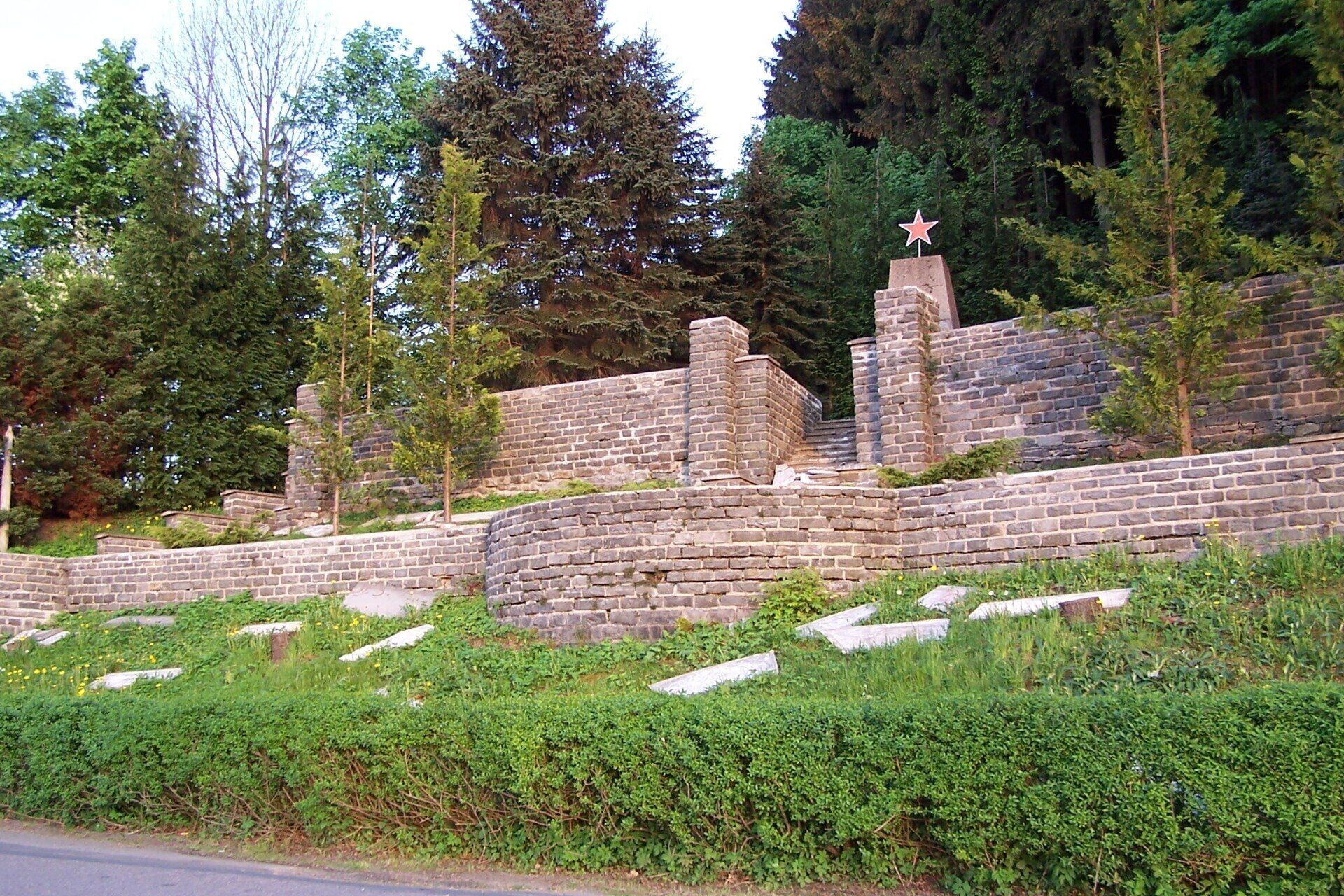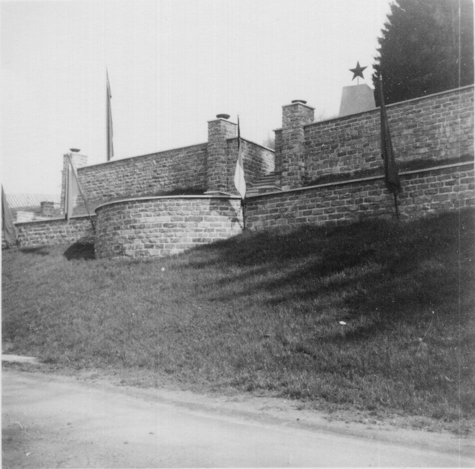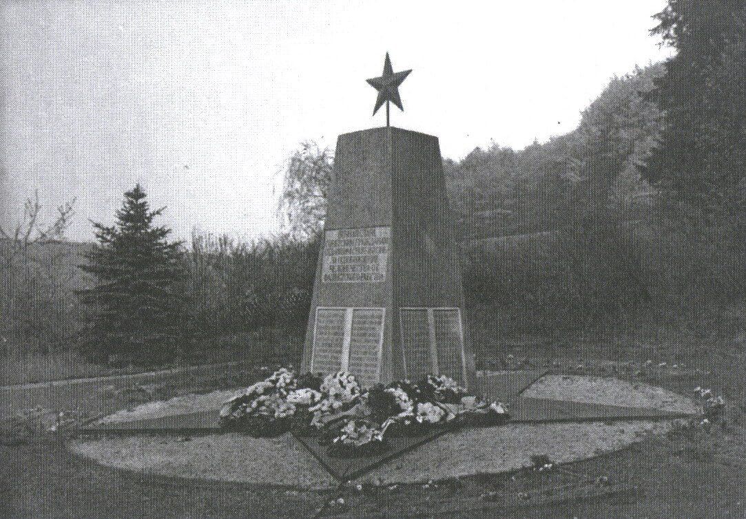Das Lager wurde kurz vor Kriegsende aufgelöst. Auf den Massengräbern waren Birkenkreuze errichtet. Im Jahr 1947 wurden sie durch einen 4,5 Meter hohen Obelisken mit gläsernem roten Stern ersetzt. Auf diesem befanden sich die Namen der Toten und ein Schriftzug in kyrillisch: „Ewiger Ruhm den Sowjetbürgern, die ihr Leben für die Befreiung der Menschheit von faschistischer Sklaverei hingaben“. Zum Obelisken führte eine schlichte Steintreppe.